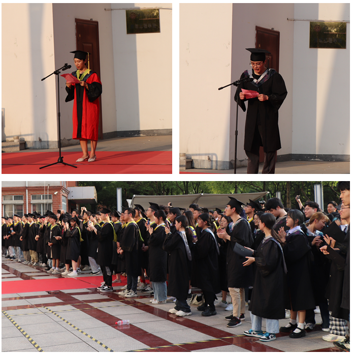 典礼在庄严的国歌声中开始。在激昂奋进的乐典中,主席台上的领导和老师为全体毕业生颁发毕业证书和学位证书,并扶正流苏合影留念。曾经的青春岁月、温暖的美好祝福、收获的幸福成果都定格在一张张照片中。