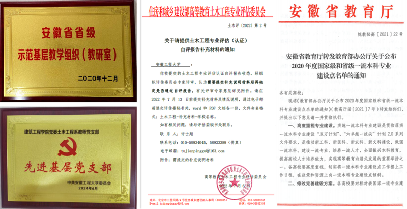 发挥党支部书记头雁效应,以党员模范带头推进专业核心任务。党员骨干牵头承担专业工程教育认证、硕士学位点申报、审核评估等核心任务,目前土木工程专业已获批省级一流专业建设点、省级示范基层教学组织,土木水利专业硕士学位点成功落地,工程教育认证自评报告通过审核,专家进校考察在即。