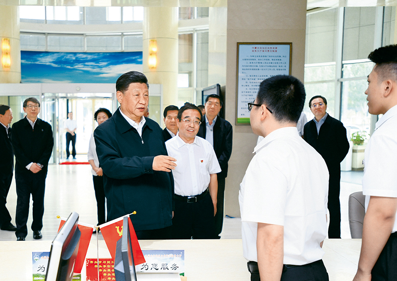 2019715日至16日,中共中央总书记、国家主席、中央军委主席习近平在内蒙古考察并指导开展“不忘初心、牢记使命”主题教育。这是16日上午,习近平在内蒙古自治区自然资源厅自然资源政务大厅同工作人员交谈,了解开展主题教育和落实便捷高效政务服务等情况。 新华社记者 谢环驰/