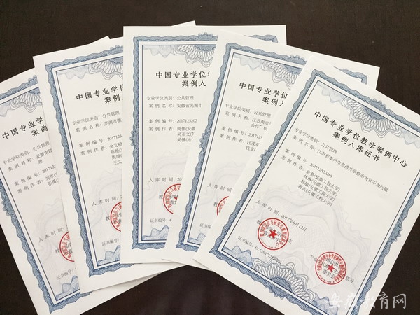 硕士点获批以来,积极组织与参加MPA教指委举办的各项活动,20165篇案例成功入选中国公共管理专业学位教学案例中心,入库数量居安徽省MPA培养院校首位;2017年教育部学位与研究生教育发展中心、全国公共管理专业学位研究生(MPA)教育指导委员会联合主办的“案例中心杯”首届“中国研究生公共管理案例大赛”中心MPA代表队荣获三等奖(全国32)。
