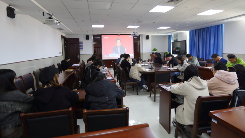 11月12日,中共中央在北京举行新闻发布会,解读党的十九届六中全会精神,并答记者问。数理与金融学院党委组织党委理论学习中心组成员、学生干部在学院会议室集中收看十九届六中全会新闻发布会直播,其余师生通过网络、电视、手机等形式收看直播。