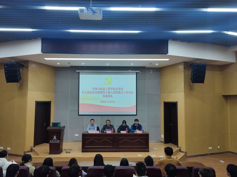 1124日晚,生物与食品工程学院在C座报告厅举行第九期发展对象培训班暨第八期入党积极分子培训班结业典礼。学院党委副书记王彦青出席,辅导员李良渊、何祥玲、胡晓康参加,活动由胡晓康主持。