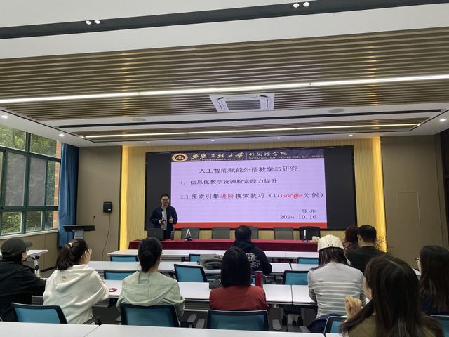 报告结束后,与会者纷纷表示受益匪浅,对人工智能赋能外语教学与科研方面的强大功能表现出浓厚的研究兴趣。同时,韩利敏介绍了人工智能时代外国语言文学学科和专业的困境与出路,强调了当代外语教师须不断优化自身的知识结构,持续提升科技人文能力和素养,努力提高自己的“搜商”。张兵的报告不仅让师生更加深入地了解了人工智能技术在外语教学与科研中的应用前景和潜力,还为他们提供了宝贵的实践经验和启示。